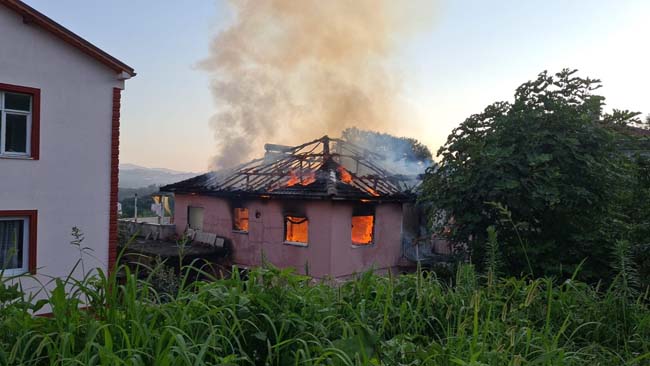 Zonguldak’ın Alaplı ilçesi Durhanlı köyünde tek katlı bir evde tüp patlaması sonucu çıkan yangında ev küle döndü.