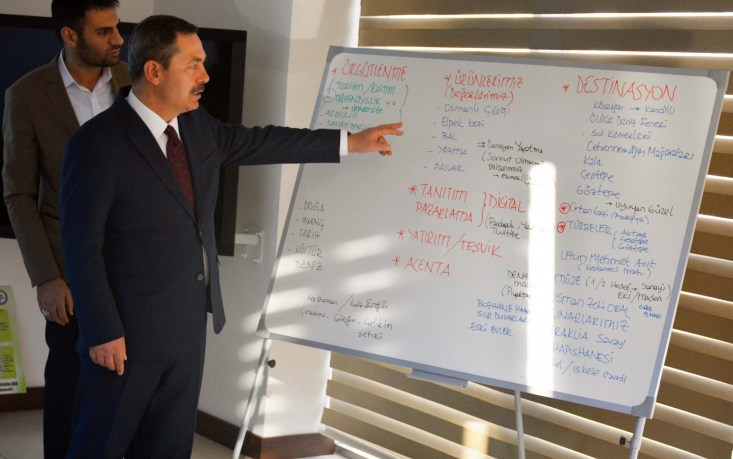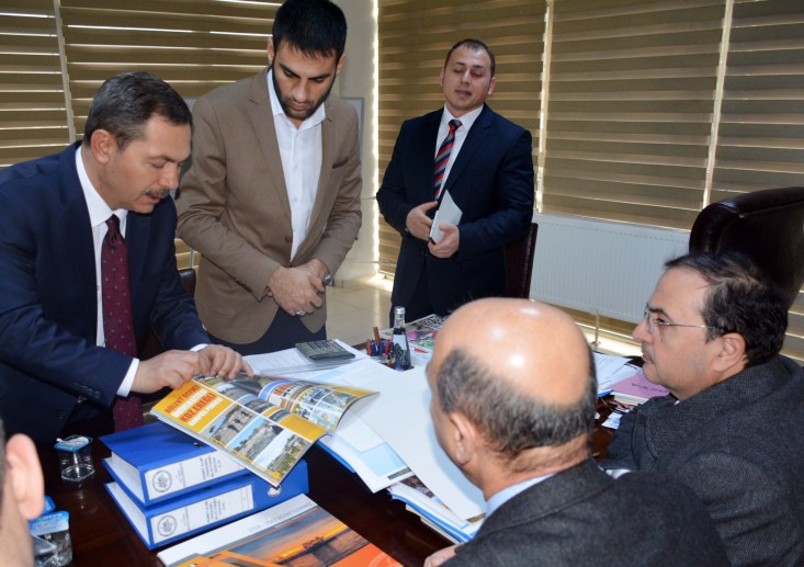 Belediye Başkanı Hüseyin Uysal, ilçede başlattıkları turizm atağı kapsamında ilçenin tarihi ve kültürel zenginliklerinin yer aldığı slayt gösterisi ve katalog çalışmalarını gelen heyete sundu.
