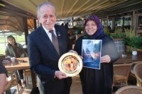 Kaçmaz kendisine gösterilen ilgi ve alakadan dolayı teşekkür ederek Akgün'e özel olarak işlemeli porselen tabak hediye etti.