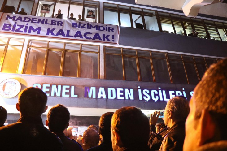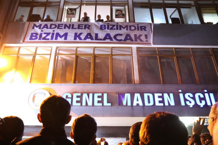 birlikte madenden çıkan işçiler Genel Maden İşçileri Sendikası'nın yolunu tuttu.