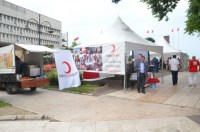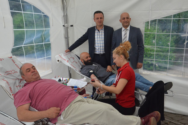 nedeniyle Şehitler anıtı önünde bulunan meydanda gönüllü kan bağışı standı