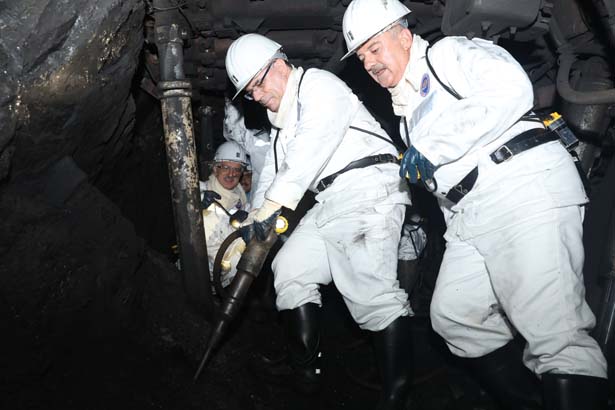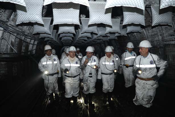 Enerji ve Tabii Kaynaklar Bakan Yardımcısı Prof. Dr. Şeref Kalaycı, beraberinde TKİ Genel Müdür Vekili Ömer Bayrak, milletvekilleri, TTK Genel Müdürü Kazım Eroğlu, GMİS Genel Başkanı Hakan Yeşil ve beraberindekiler ile birlikte TTK Kozlu Müessesesi'ne geldi. Burada yerin -425 metre altına inen Kalaycı ve beraberindekiler madende kullanılan yarı mekanize sistemi inceledi.