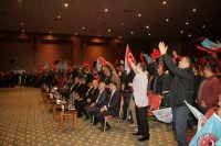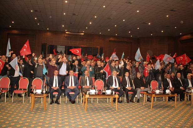 Genel Başkan lehine tezahürat yaptı, sloganlar attı. Toplantıda Türk Metal