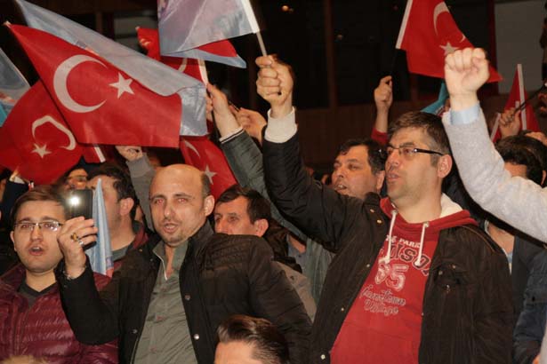 "Pevrul Başkan Nerede biz oradayız" sloganları arasında girdi.