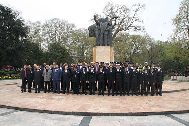Ereğli Emniyet Müdürlüğü'ne bağlı personel, emekli polisler ve Ereğli Belediyesi Zabıta Müdürlüğü ekiplerinin katıldığı törenin ardından anıt önünde hatıra fotoğrafı çektirildi.