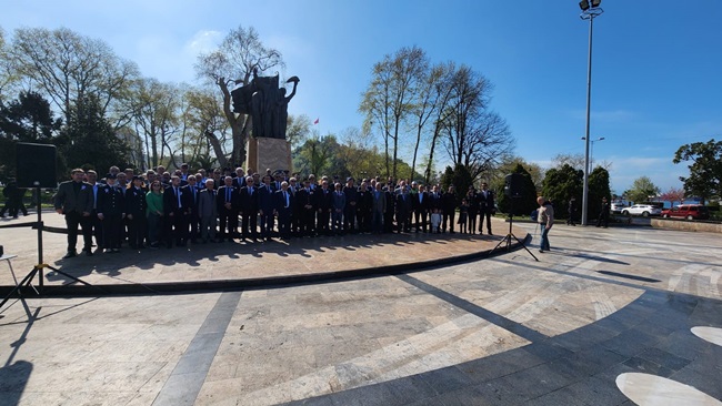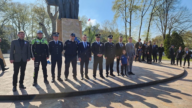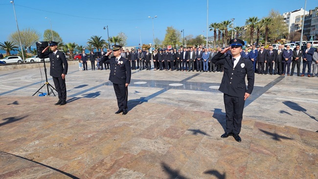 İlçe Emniyet Müdürü Hasan Ünlü’nün Atatürk Anıtı’na çelenk bırakmasının ardından, saygı duruşunda bulunuldu ve İstiklal Marşı okundu.