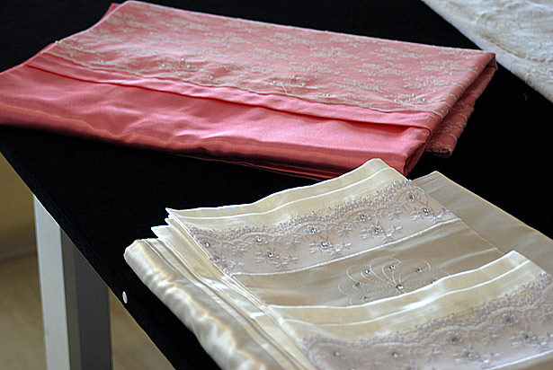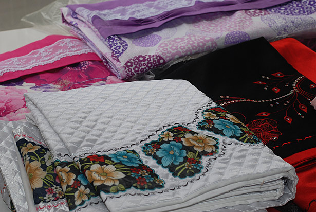 Özellikle toptan sipariş ve kişiye özel tasarımlar yaptıklarına da dikkat çeken Demir, hiçbir yerde bulunmayan makine nakısı ile yazı yazdıklarını anımsatarak, nişan bohçasından, bebek odası hazırlamaya, pike nevresim ve salon takımlarından mutfak takımı ve cibinlik süslemeye kadar çeyiz adına her türlü ihtiyaca cevap verebildiklerini sözlerine ekledi.