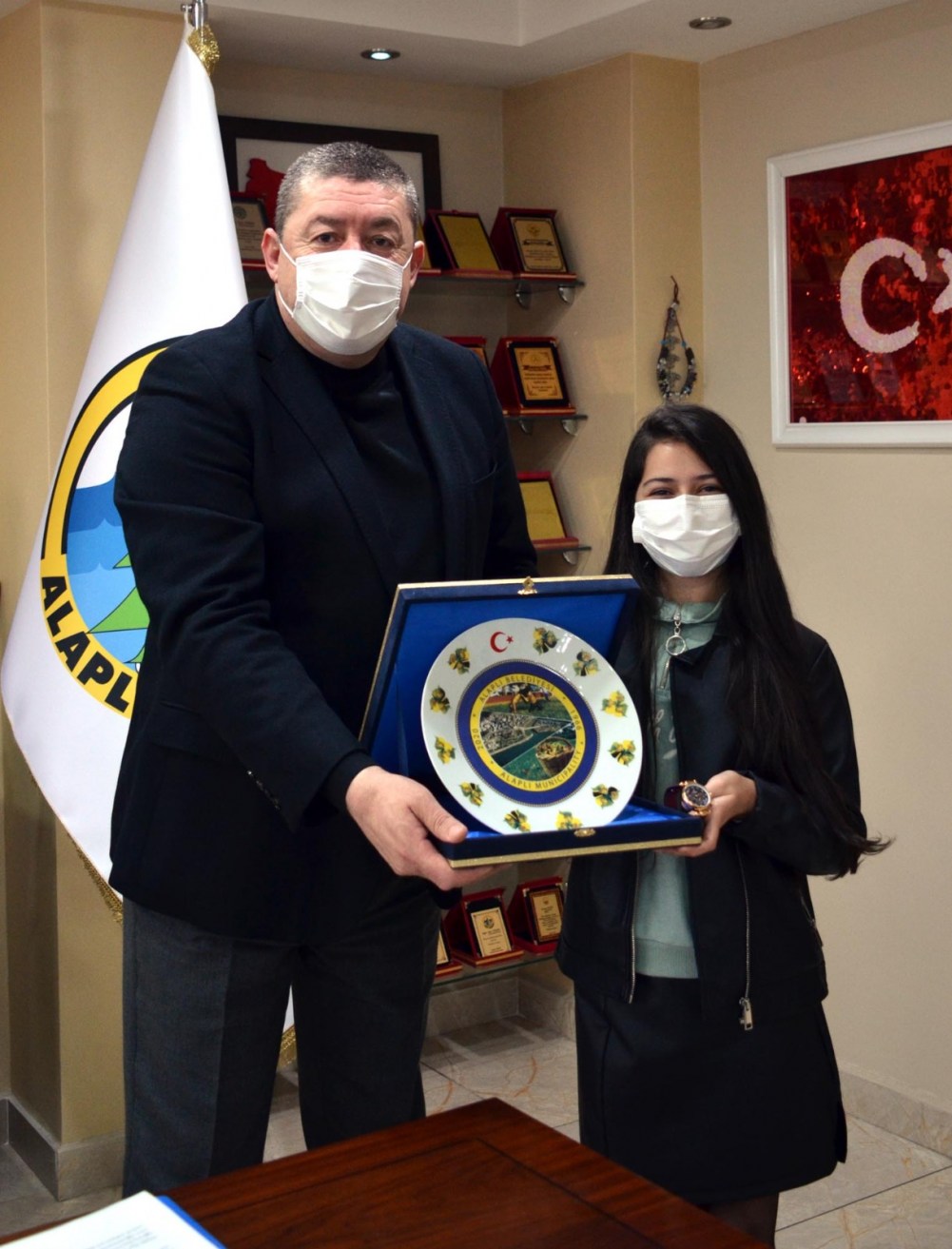 Devlet Su İşleri (DSİ) Genel Müdürlüğünce "Dünya Su Günü" etkinlikleri kapsamında düzenlenen kompozisyon yarışmasında Türkiye birincisi olan Alaplı Kasımlı Ortaokulu öğrencisi Cemre Su Çilingir, Alaplı Belediye Başkanı Nuri Tekin’i ziyaret etti.