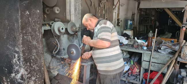 Durmuş, 200 yıldan fazladır, kökleri Osmanlı dönemi demir ustalarına dayanan dükkanda babasından devraldığı mesleği atölyede sürdürmeye çalıştığı bıçakların demir ve çiviyi rahatlıkla kesebildiğini belirtti.