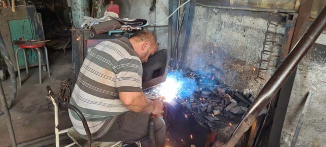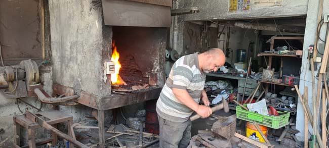 Sıcak yaz aylarında ocak başında atölyede çakıdan, baltaya kadar üretilen tüm ürünlerin bilek gücüyle sıcak demir dövülerek yapıldığını anlatan Sıcak demir dövme ustası Yaşar Durmuş, ”1800 yıllardan bu yana Demircilik mesleğimiz devam etmekte.en güzel demir çelikte işin uzmanı olmaktan geçer.şu görmüş olduğunuz bu bıçak bizim bölgenin fasulye bıçağı diye geçiyor.yaklaşık 2 bin derecelerde bu ocak ısındıktan sonra bu dövülerek karbon şeklinde yapılıyor.daha sonra yıllarda kurban bıçaklarına geçtik. Bıçaklarınızın uzun yıllar kullanılmasını istiyorsanız. Özelikle dövülürken çekiç darbeleri çok önemlidir. Bıçak üretiminde çekiç darbesiyle bıçak şeklini alıyor. Önemli olan bıçağa suyunu vermektir. Bütün bu işlemler bittikten sonra en son kemik ya da fiberden yaptığımız sapları takarak satışa hazır hale getiriyoruz” diye konuştu.