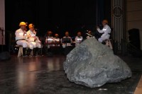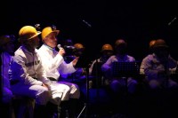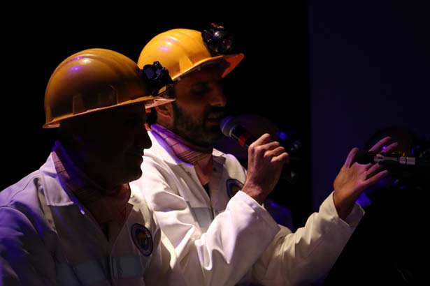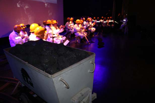 çalışırken söyledikleri türküleri sahnede seslendiren maden işçilerinin sahneye