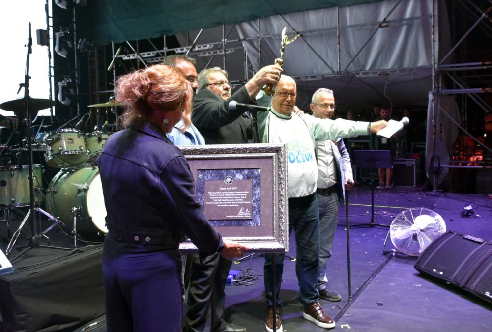 Arif Sağ, ödülü almak üzere oğlu Tolga Sağ ile birlikte sahneye geldi. Belediye Başkanı Halil Posbıyık, bu ödülü Arif Sağ gibi bir sanatçıya vermenin mutluluğunu yaşadıklarını belirterek şunları söyledi.