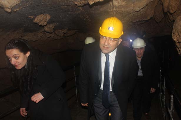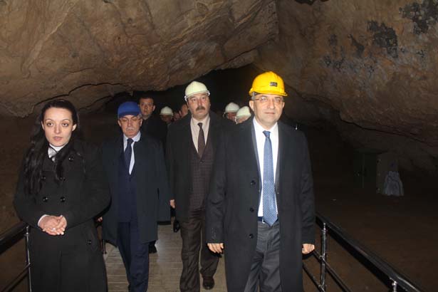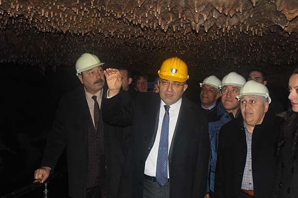 beraberindekiler Gökgöl Mağarası'nı gezerek incelemelerde bulundu. Vali Kaban,