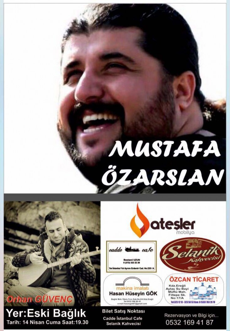 Türkülerin farklı sesi Mustafa Özarslan ve Orhan Güvenç, 14 Nisan Cuma akşamı eski Bağlık' da konser verecek. Saat 19.30 başlayacak olan konserle ilgili yapılan açıklamada "Türkü tadında bir gece geçirmek isteyen tüm türkü severleri düzenlenecek olan bu konserimize davet ediyoruz" dediler.