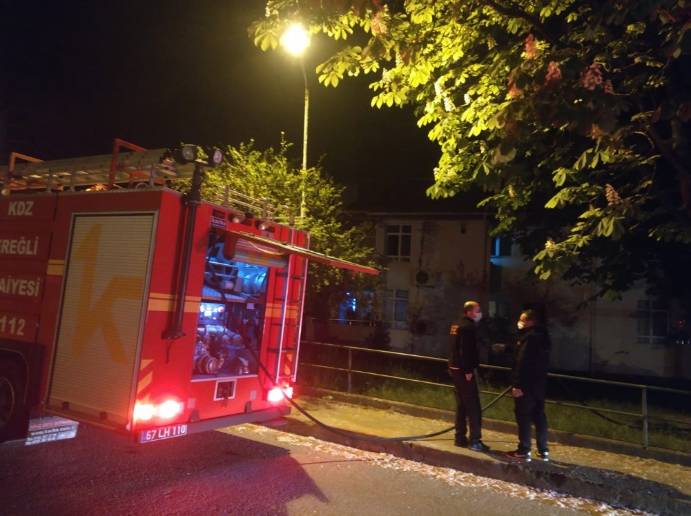 Bir anda alev alan evde ev sahibi güçlükle uyandırılırken olay yerine gelen Ereğli Belediyesi itfaiye ekipleri yangını büyümeden söndürdü.