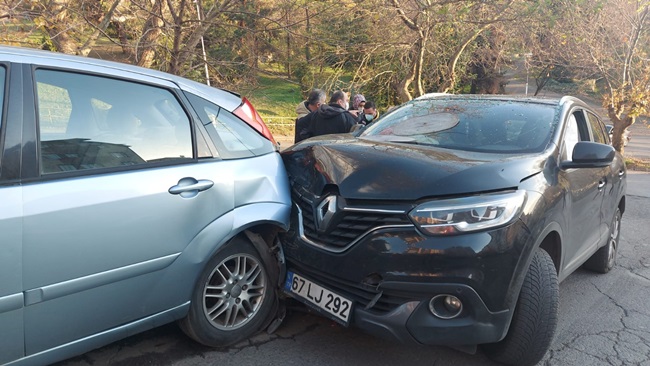 İddiaya göre 67 LH 762 plakalı otomobil sürücüsü Zafer G. Yokuştan geri geri indiği sırada direksiyon hâkimiyetini kaybederek önce bir otomobile ardından Bekir A. nın kullandığı 67 LJ 292 plakalı cipe çarparak durabildi. Kazada Bekir A.nın eşi Serap A. yaralandı. Yaralı için sağlık ekiplerine haber verildi. Olay yerine gelen 112 ekipleri yaralı kadına yaptıkları ilk müdahalenin ardından hastaneye kaldırdı. Kazaya karışan araç sürücüleri ifadeleri alınmak üzere Polis Merkezine götürüldü. Kaza ile ilgili soruşturma başlatıldığı öğrenildi.