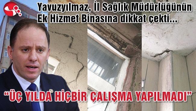 Daha öncesinde Milli Emlak Müdürlüğü uhdesinde olan Acılık semtindeki binayı 22.02.2018 tarihinde devralan ve ek hizmet binasına dönüştüren Sağlık Bakanlığını uyaran CHP’li Yavuzyılmaz, binanın depreme dayanıksız olduğu konusuyla ilgili çok sayıda ihbarın taraflarına ulaştığını söyledi.