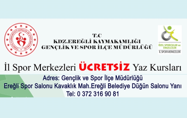 Gençlik ve Spor İlçe Müdürlüğü tarafından 518 yaş arası çocuk ve gençlere okulların yaz tatiline girmesiyle 1 Temmuz 2019 tarihinde İl Spor Merkezleri açılacaktır.