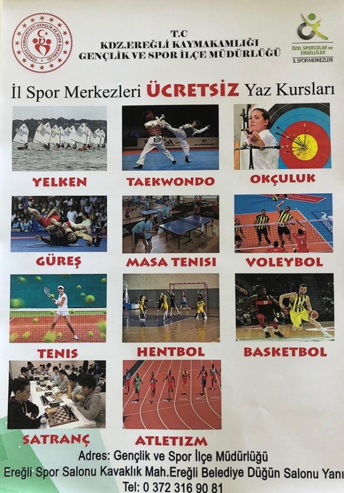 Kayıtlar 17 Haziran 2019 tarihinde başlayacak olup, çocuk ve gençlerimize Engelli vatandaşlarımıza açılan branşlar ücretsizdir.