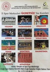 Gençlik ve Spor İlçe Müdürlüğü tarafından 518 yaş arası çocuk ve gençlere yazın boş zamanlarını sporla değerlendirmelerini, spor kültürünü aşılamak, sporu sevdirmek, spor yapma alışkanlığı kazandırmak, sosyal ve kültürel yönden gelişmelerini sağlamak, yazın boş zamanlarını sporla değerlendirmelerini, her türlü zararlı alışkanlıklardan ve yasa dışı eylemlerden korumak, ruh beden sağlığı yerinde fizyolojik ve psikolojik sağlamlığa sahip, güçlü bir alt yapı oluşturmak, yetenekli ve kabiliyetli gençleri Türk sporuna kazandırmak, amacıyla okulların yaz tatiline girmesiyle 1 Temmuz 2019 tarihinde İl Spor Merkezleri açılacaktır.