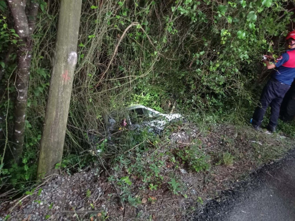 Zonguldak'ın Ereğli ilçesinde yoldan çıkan otomobil 200 metre uçuruma yuvarlanmaktan ağaçlara takılarak kurtuldu. Kazada sürücü, eşi ve 2 çocuğu yaralandı.