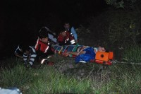 bağlanan iplerle uçurumdan yukarı çekilerek kurtarıldı. Oğlunun sedyede