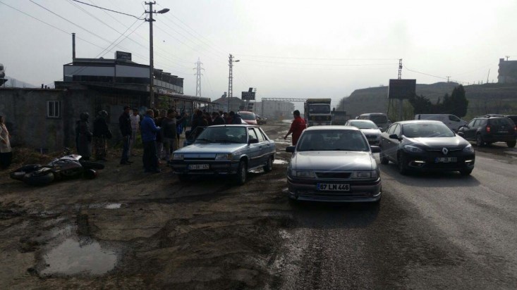 Kaza akşam saatlerinde Zonguldak İstanbul karayolu Ömerli mahallesinde meydana geldi. Alınan bilgilere göre Yaşar Çelik'in kullandığı 67 DR 492 plakalı otomobille Seçkin Kırtay'ın kullandığı 67 TP 299 plakalı motosiklet çarpıştı. Çarpışmanın etkisi ile otomobilde büyük hasar oluşurken, kazada yaralanan motosiklet sürücüsünün yardımına çevredeki vatandaşlar ve diğer sürücüler koştu. Haber verilen sağlık ekipleri yaralı sürücü Kırtay'a yaptıkları ilk müdahalenin ardından Ereğli Devlet hastanesine kaldırdı. Acil serviste tedavisine başlanan Motosiklet sürücüsü Seçkin Kırtay'ın sağlık durumunun iyi olduğu ve tedavisine devam edildiği öğrenildi. Kazaya karışan otomobil sürücüsü Yaşar Çelik ise ifadesi alınmak üzere polis merkezine götürüldü. Polis kaza ile ilgili tahkikat başlattı.
