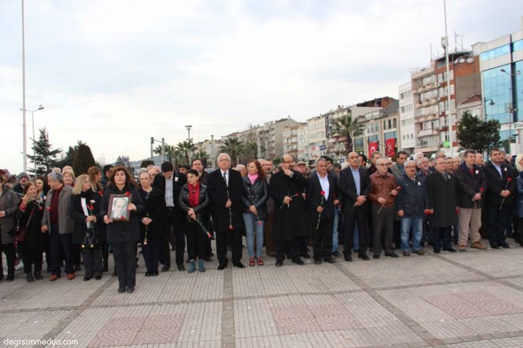 önünde bulunan Uğur Mumcu portresinin önüne karanfiller koyuldu.