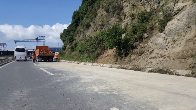 Alaplı-Ereğli Karayolu Tersaneler mevkiinde sel felaketi sonrasında dağdan gelen kaya ve toprak yığıntısını temizlemeye başlayan Karayolları ekipleri trafiği tek şeritten veriyor. Sürücülerin çalışmalar esnasında Karayolları Bölge Müdürlüğü ekiplerinin uyarılarına uymaları istendi.