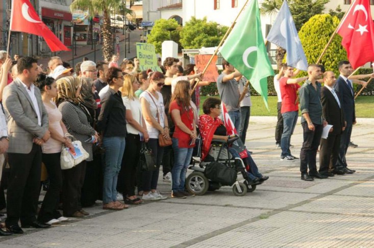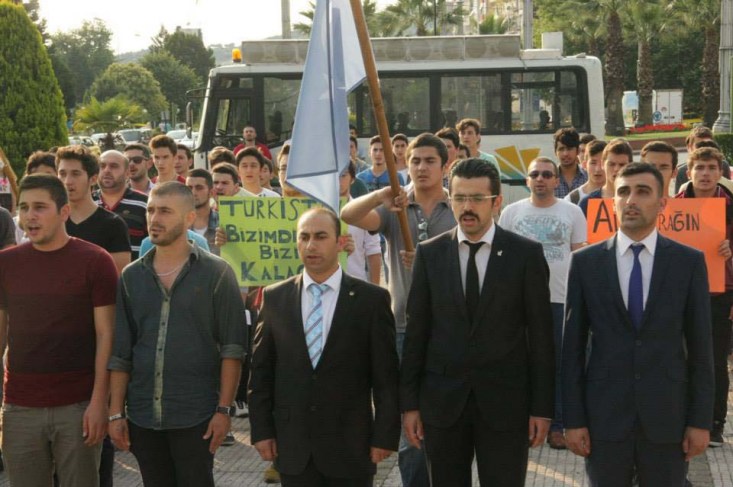 Türklere zulüm uygulayan Çin Yönetimine tepki gösterdi. Atatürk Anıtı önünde