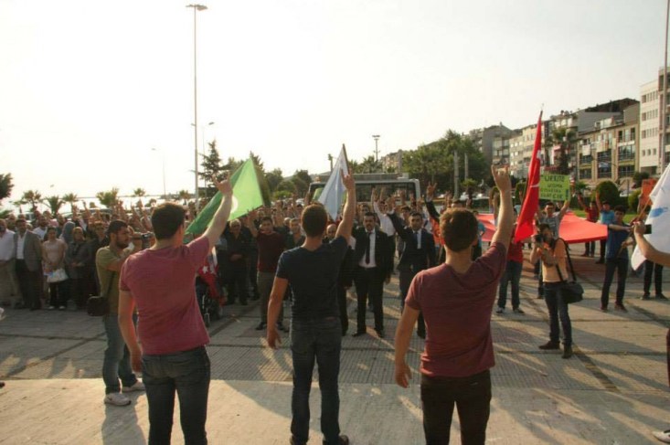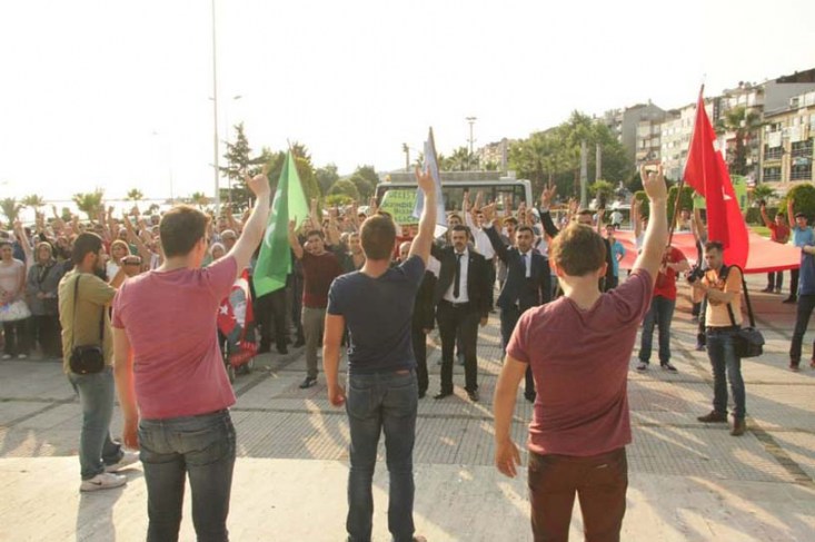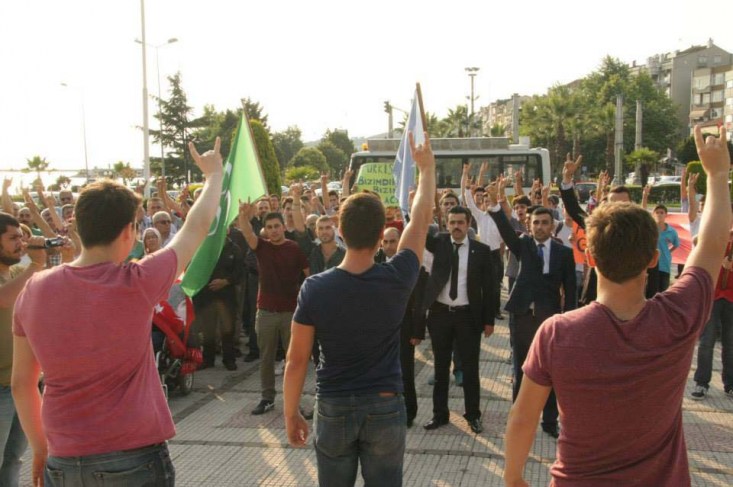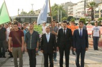 Ülkü Ocakları binası önünde toplanarak Atatürk Anıtı önüne kadar yürüyen grup,