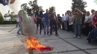 Basın açıklamasının ardından Çin bayrağı yakılarak, protesto edildi.