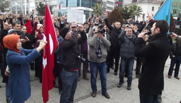 Kdz.Ereğli Atatürk Anıtı Önünde toplanan yüzlerce kişi sloganlarla "Ne Mutlu