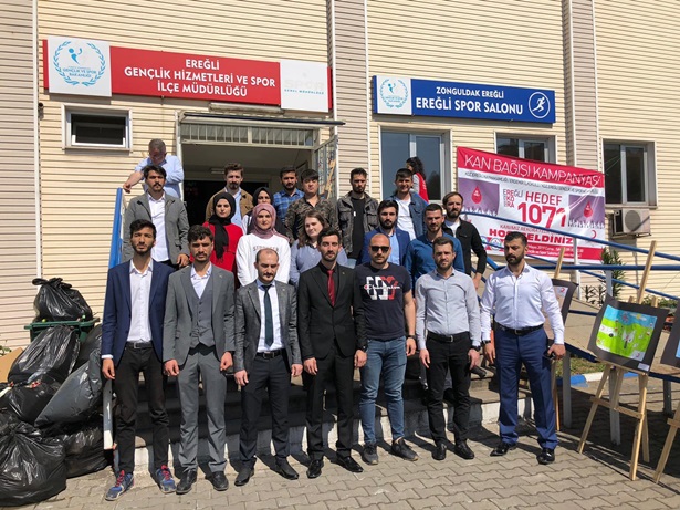 Üniversitedeki 3 Mayıs Milliyetçiler Günü programının ardından Kdz Ereğli Ülkü Ocakları Safa Tel Başkanlığında Kızılayın düzenlemiş olduğu Gençlik ve Spor Merkezindeki kan verme etkinliğine katıldı.