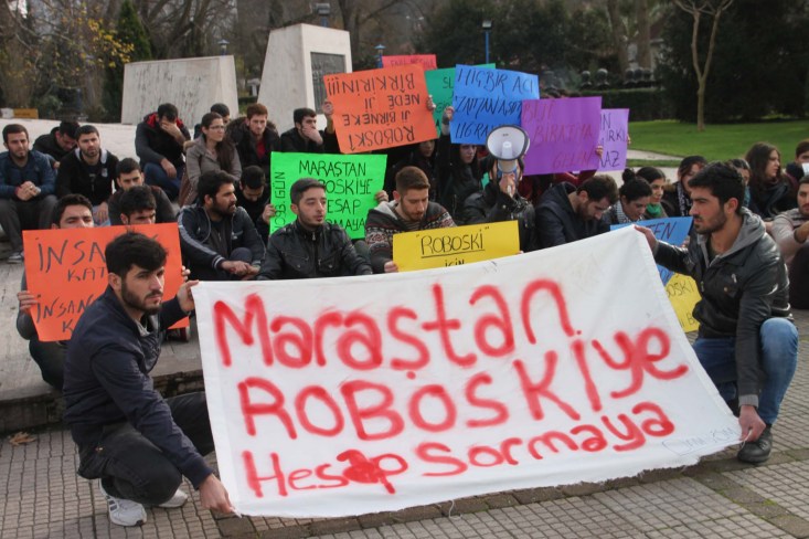 Anıt önünde toplanan Ereğli Eğitim Fakültesi (EEF) öğrencileri, sloganlar eşliğinde basın açıklaması yaptı. Basın açıklamasını okuyan öğrencilerden Fırat Cengiz, "Günlük yaşamını idame edebilmek ve okul harçlığını çıkartmak için kaçakçılığı meslek edinmek zorunda bırakılan insanlarımızın üzerine bombalar yağdırmak ve yetmiyormuş gibi katliama meşru zemin hazırlama adına akla zarar siyasi açıklamalar yaparak yeni Türkiye'nin eski Türkiye'den devir aldığı zihniyetin ne kadar canlı olduğunu gözler önüne sermiştir. Roboski katliamı üzerinden 3 yıl geçmesine rağmen yargılama süreci bir yana dursun ilkin dosyaya gizlilik kararı konarak gerçekler gizlenmiş, manüpilatif haberlerle sorumluların açığa çıkması engellenmiş, ardından Genelkurmay askeri savcılığının kamu davası açılmasına gerek olmadığı gerekçesi ile dosya kapatılmak istenmiştir. 28 Aralık 2011'de 17'si çocuk 34 insanımızın üzerine bombalar yağdıran devlettir. Bu katliamın siyasi sorumlusu iktidardır. Dolayısıyla katliama kılıf uydurma çabasından vazgeçilmeli, sorumluluk kabul edilmeli ve yargı süreci işlemelidir." dedi.