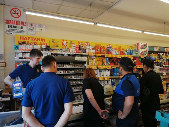"Zabıta Müdürlüğü işyeri denetim ekibi olarak ilçemiz genelinde bulunan ulusal marketlerde işyeri açma ve çalışma ruhsatı, etiket kontrolü, kasa reyon farkı ve hijyen denetimleri yapılmakta olup eksiklikleri tespit edilen marketlere gerekli yasal işlemler yapılmaktadır."