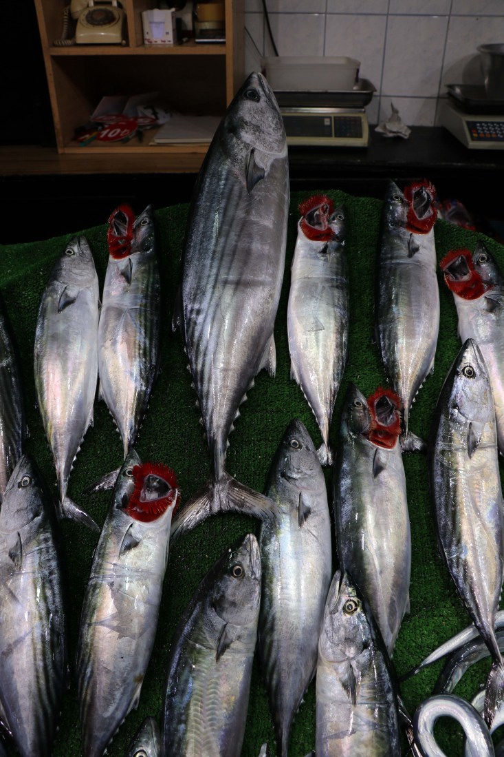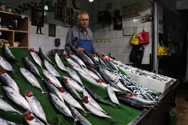 balıkhanesinde balık fiyatlarını yükseltti. Tezgahlarda yer alan Palamut tane