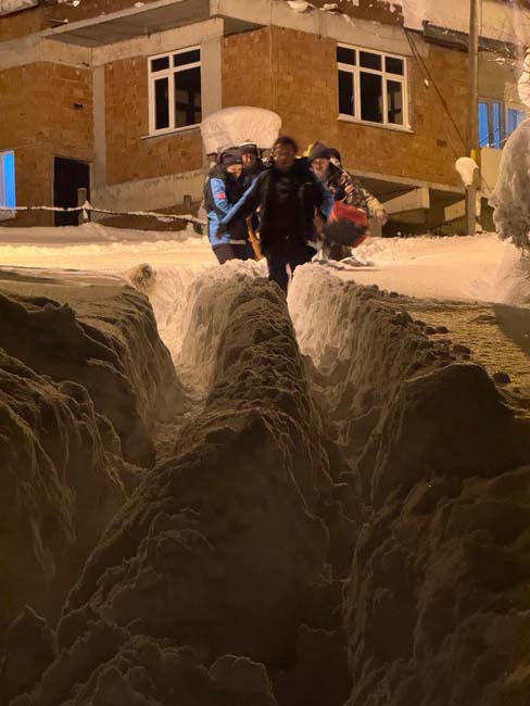 Zonguldak merkeze bağlı Bahçelievler Mahallesi’nde yalnız yaşayan 81 yaşındaki İmdat Ünver, solunum sıkıntısı nedeniyle 112 Acil Çağrı Merkezi’nden yardım talep etti. Ancak yoğun kar yağışı ve buzlanma nedeniyle ambulans ekibi hastaya ulaşamadı. Durumun bildirilmesi üzerine hızla harekete geçen Ulusal Medikal Kurtarma Ekibi (UMKE), zorlu hava ve yol şartlarına rağmen Ünver’in evine ulaşmak için yoğun çaba harcadı. Yaklaşık 500 metre uzunluğundaki dik rampayı aşarak hastaya ulaşan ekip, özel kombinasyon sedye kullanarak Ünver’i güvenli bir şekilde taşıyarak sağlık ekiplerine teslim etti. Yaşlı adam Atatürk Devlet Hastanesi’ne sevk edildi.