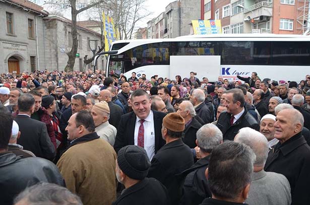 Belediye Başkanı Nuri Tekin, Alaplı Merkez Camii önündeki kutsal topraklara Umre ziyaretine giden vatandaşları uğurlama törenine katıldı.