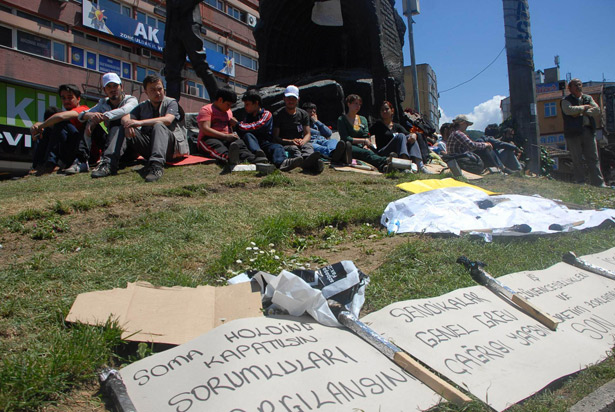 Madenci Anıtı önünde sürdürüyor. Açlık grevi ile birlikte başta Soma olmak