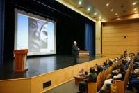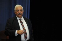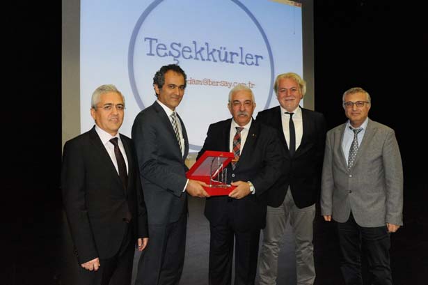 Prof. Dr. Mahmut Özer tarafından konferans sonunda bir teşekkür plâketi takdim