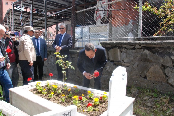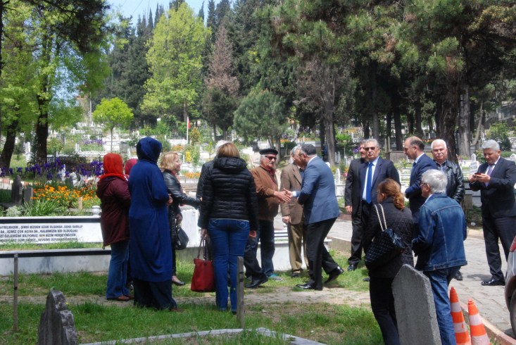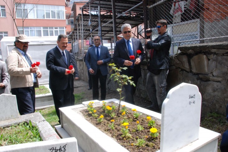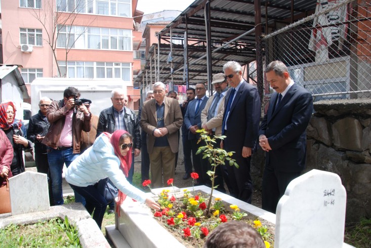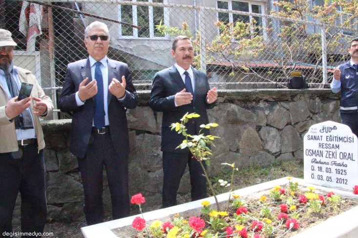 tören ünlü ressam Osman Zeki Oral' ın mezarı başında, kabrine kırmızı karanfiller bırakıldı. Mezarı başında