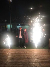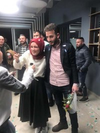 olduğu, "Benimle evlenir misin Zümre?" yazılı pankartı yüzlerce