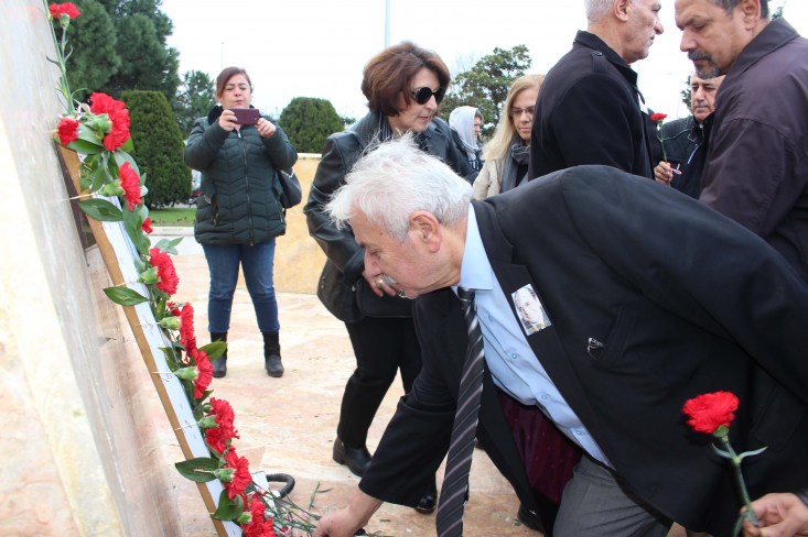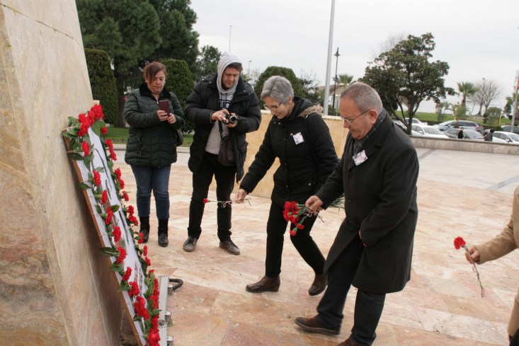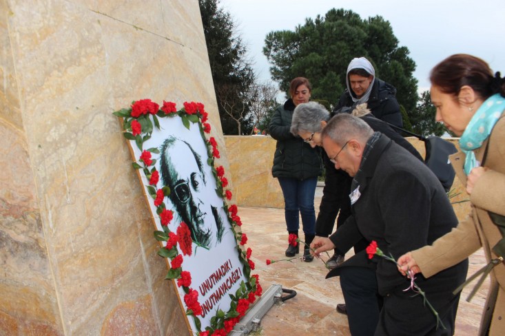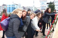 önünde hazırlanan Uğur Mumcu tablosu önüne kırmızı karanfiller bıraktı, günün