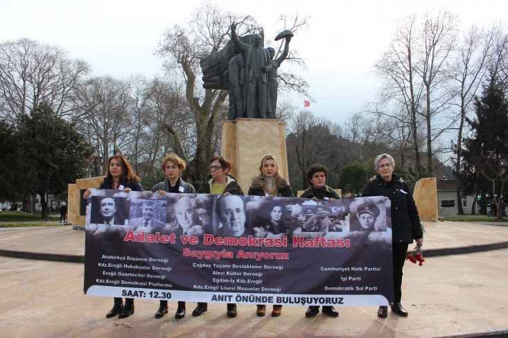 aradeniz Ereğli'de Atatürkçü Düşünce Derneği'nce (ADD) Araştırmacı Gazeteci Yazar, Hukukçu Uğur Mumcu'nun öldürülüşünün 26. Yıldönümü ve Adalet ve Demokrasi Haftası dolayısıyla tören düzenlendi. ADD İlçe Başkanı Yusuf Arslan, "2019, Büyük Atatürk'ün eşsiz liderliğinde milli mücadeleye başlamamızın yüzüncü yılı ve Adalet ve Demokrasi için mücadeleye başlamanın tam zamanıdır" dedi.