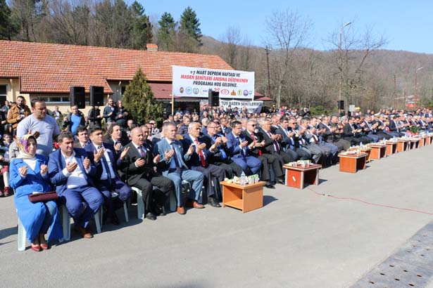 Tören de son konuşmayı yapan Ereğli Kaymakamı Nazım Madenoğlu ise konuşmasında" Bizim Türkiye olarak enerjiye büyük ihtiyacımız var. Çok çeşitli enerji kaynaklarından bir tanesi hiç şüphe yok ki Taş kömürüdür. Gururla söyleyebiliriz ki Zonguldak'ımız bu değerli enerji kaynağına sahiptir. VE bu kömürü 200 yıldır çıkartıp insanımızın ülkemizin hizmetine veriyoruz. Sobasını, kaloriferini yakmak isteyen enerji üretmek isteyen herkes bu kömüre muhtaç. İşte bu muhtaçlığı giderecek olan daha hayattayken ekmeği uğruna vatanımızın devletimizin ihtiyaç duyduğu enerjiyi sağlamak uğruna toprağın altına giren saygı değer kömür, maden işçilerimizdir. Biz onları Biz onları ne kadar tebrik etsek ne kadar kutlasak ne kadar alınlarından öpsek azdır" dedi.