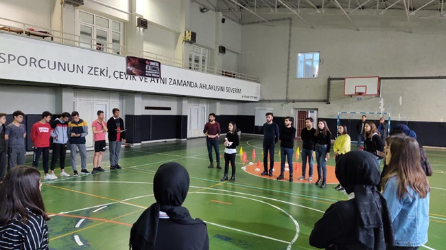 İlk olarak öğrenciler bir parkurda gözleri kapalı ve arkadaşlarının yönlendirmesi ile basketbol oynamaya çalıştı. İkinci etkinlikte ise öğrenciler ağızları ve zayıf olan elleri ile resim çizdiler. Zor anlar yaşayan öğrenciler bu etkinlikler sonucunda aslında daha çok empati yapmaları gerektiğini de anlamış oldu.