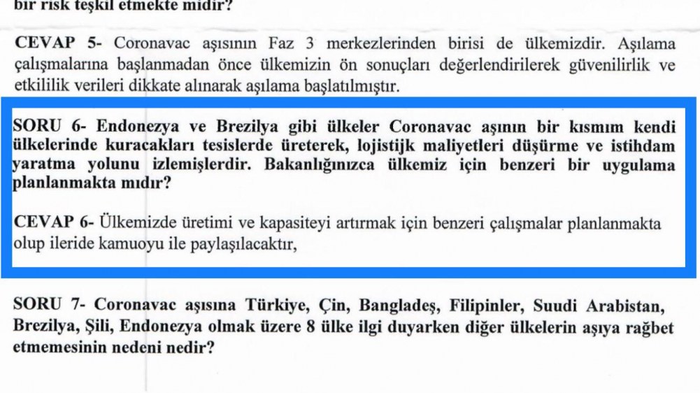 “Koronavirüs pandemisinin ilk günlerinde, Türkiye’nin aşı tedariki konusunda almış olduğu önlemlere ilişkin Sağlık Bakanlığına vermiş olduğumuz soru önergesinde, o günlerde sadece Çin'den temin edilen Sinovac aşısının bir kısmının Türkiye’de üretilerek hem aşının lojistik maliyetlerinin düşürülebileceğini hem de ülkemizde yeni bir istihdam alanının yaratılabileceğini bir soru ile önermiştim.