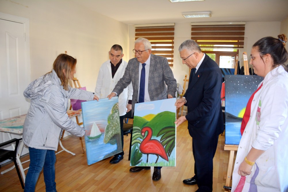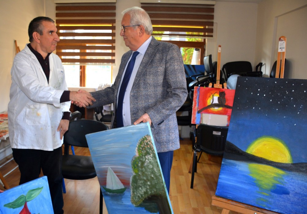 Başkan Posbıyık, engelli bireylerin katıldığı resim kursunu da ziyaret etti.