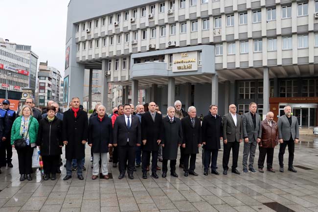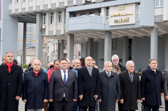 Tören, Maden Mühendisleri Odası tarafından Atatürk anıtına çelenk konulmasıyla başladı. Ardından saygı duruşunda bulundu ve İstiklal Marşı okundu. Törene Zonguldak Vali Yardımcısı Muammer Güler, Zonguldak Belediye Başkanı Tahsin Erdem, Genel Maden İşleri Sendikası (GMİS) Genel Başkanı Hakan Yeşil, GMİS Genel Başkan Yardımcısı İsa Mutlu, Maden Mühendisleri Odası Başkanı Erdoğan Kaymakçı ve yönetim kurulu üyeleri, CHP İl Başkanı Devrim Dural, sivil toplum kuruluşları temsilcileri katıldı.